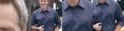 3.5 oz., 53% cotton, 43% polyester, 4% lycra; Fine yarn count shirting; True Non-iron performance straight from the dryer; Active Fit; Patented pucker-free taped seams; Fused collar, cuffs, and placket; Split back seam with bias cut back yoke; Straight collar with built-in collar stays; adjustable Comfort Collar for up to an inch of stretch at neck; left-chest pocket; pearlized buttons;