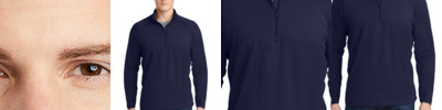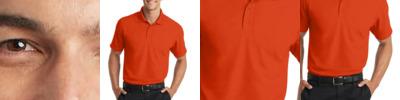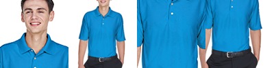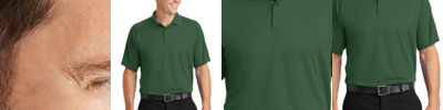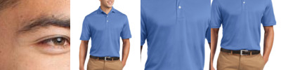 4.8 oz., 100% micro-textured polyester knit; Anti-bacterial; Moisture-wicking; Relaxed fit; Flat-knit collar; 3-button placket;