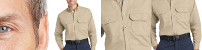 FEATURES Meets IL50 industrial laundry standards. Banded, topstitched, button-down collar. Placket front with button closure. Tailored sleeve plackets. Topstitched cuffs with button closures.