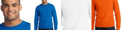 6.0 oz 100% cotton tubular jersey. Classic Long Sleeve Tee, double-needle bottom hem, with should-to-shoulder tape. Pre-shrunk to minimize shrinkage. Offered in 36 colors, this basic tee is a great versatile option