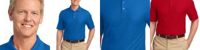 preshrunk 50% cotton/50% polyester jersey • 5.6-oz. • seamless body with double-needle bottom hem • welt-knit collar and sleeve bands • three wood-tone buttons on reinforced placket • Sizes: S-2XL, selected colors to 3XL