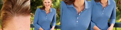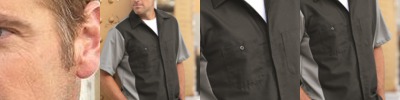 100% Polyester double Knit 6.3-oz. moisture wicking odor resistant stain release Clear-colored button front Set in sleeve with double needle hem