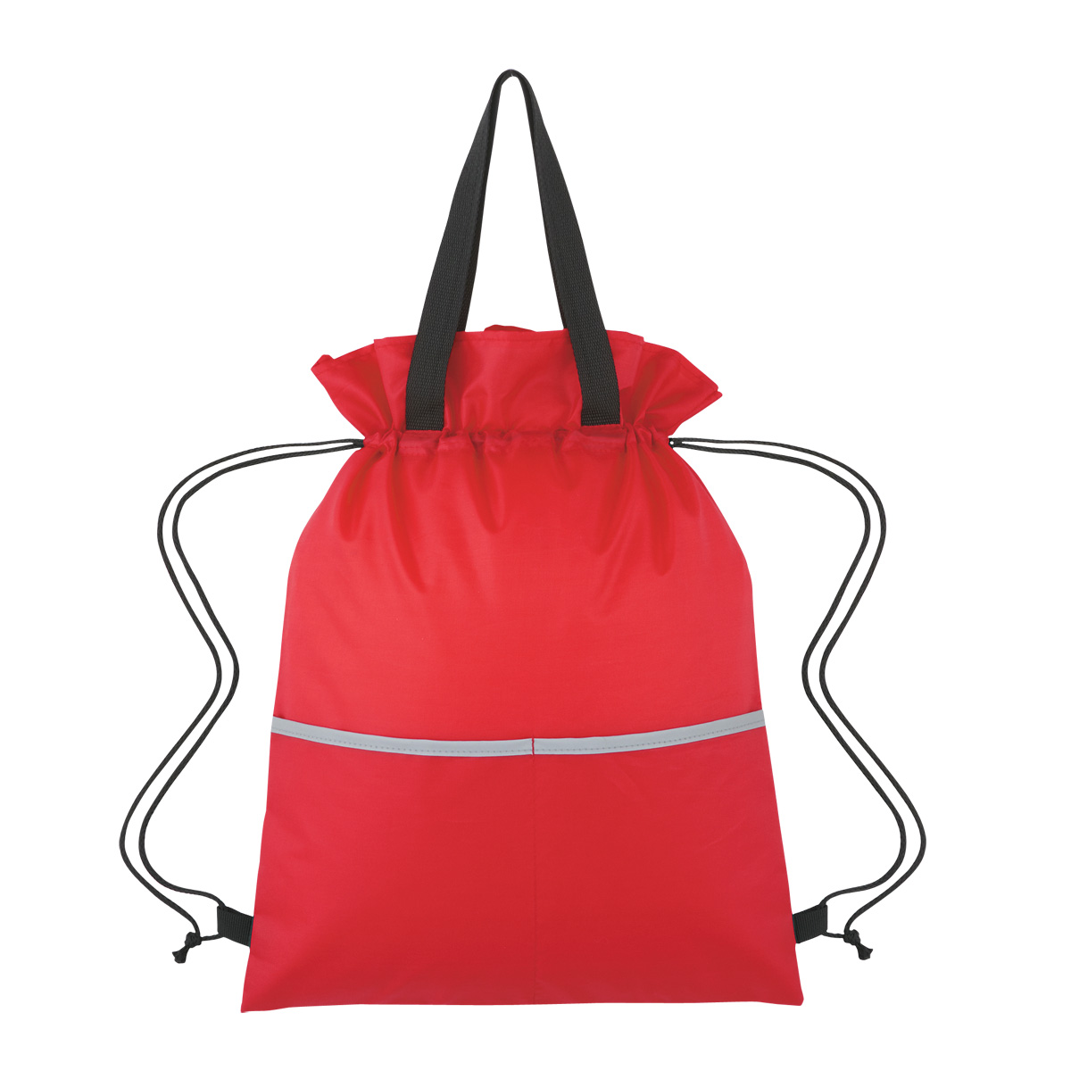 Made Of 210D Polyester Two Front Pockets Drawstring Closure Web Handles Spot Clean/Air Dry Reflective Stripe Accent
