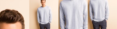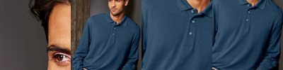 preshrunk 100% cotton jersey (sport grey body 90% cotton/10% polyester • heather/black and heather/navy bodies 50% cotton/50% polyester) • 6.1-oz. • set-on 1" rib-knit collar and sleeve cuffs • shorter tapered sleeves • double-needle collar and bottom hem • quarter-turned to eliminate center crease • Sizes: S-2XL