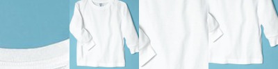 - Fabric laundered, 4.3 oz., 100% combed ringspun cotton, 32 singles