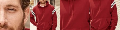 - 8.5 oz./yd², 80/20 cotton/polyester blend fleece with 100% cotton face, 20 singles