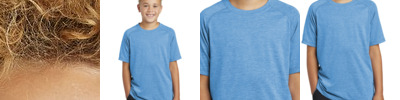 3.5 oz./yd2 / 130 gsm, 100% polyester sonic heather interlock; Moisture-wicking and UV 15-39 protection; Team fit; Cationic dyes to ensure superior brightness and excellent color fastness; Transitioning from heat-seal label to tear away label. Inventory may be mixed;