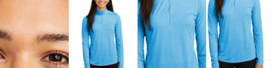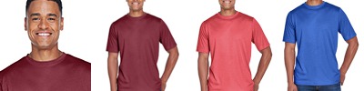 3.5 oz./yd2 / 130 gsm, 100% polyester sonic heather interlock; Moisture-wicking and UV 15-39 protection; Team fit; Cationic dyes to ensure superior brightness and excellent color fastness; Transitioning from heat-seal label to tear away label. Inventory may be mixed;