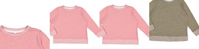 - Double-needle ribbed binding on lap shoulder, neck, shoulders, sleeves and leg opening