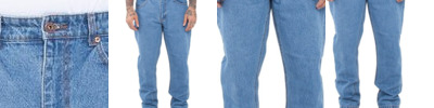12 oz., 100% cotton; 5 pocket construction; Zipper fly; Large back pockets; Straight cut;