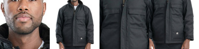 12 oz., 100% cotton quarry washed Boulder Cloth™ canvas; 3 oz., polyfil nylon-quilted lining; Corduroy collar, placket and chest pocket trim; Bi-swing back for full range of motion; Drop-tail hem; Ribbed gator cuff sleeves; Triple-needle stitching; Heavy-duty YKK metal zipper with easy-grab zipper pull;