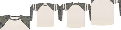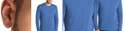 4.5 oz., 60% combed ringspun cotton/ 40% polyester fine jersey; Easytear™ label; contrast topstitched self-fabric sleeve stripes; double-needle hemmed sleeves and rounded bottom; sideseam construction; fit: adult unisex - true to size; self-fabric collar binding and back neck tape;