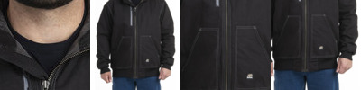 - Inner jacket: molded center front zipper, zippered hand pockets, binding at hem and cuffs