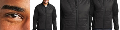 Quilted front and back panels join a wind-resistant, water-resistant soft shell to make the Hybrid a trend-right stretch performance jacket with urban edge.