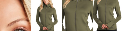 90% polyester, 10% spandex ; Bonded softshell upper body and sleeves; 100% polyester channel puffer with 3 oz. polyfil; Water-resistant DWR finish; Zippered hand pockets ; Three-piece hood with scuba collar and inside drawcords; Adjustable cuffs; Classic fit;