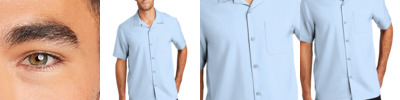 4.9 oz/yd² / 165 gsm, 100% polyester cotton-feel birdseye mesh; Moisture wicking; UV protection; Self fabric collar with integrated collar stand and built-in collar stays; Luxury, comfort and performance in one; 3-button placket; Dyed-to-match buttons;