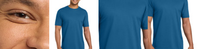4.5 oz/yd2 / 160 gsm, 100% polyester jersey; Moisture-wicking and antimicrobial properties; ChromaSoft™ technology combines the colorfastness of cationic dyes with soft cotton-feel performance; Tear away label; Active fit; Easy care;
