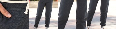 - 1x1 ribbed waistband with sewn eyelets and matching drawcord