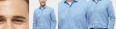 - Dyed-to-match rib-knit, no-curl collar with collar stays