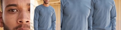 - Double-needle coverstitched cuffs and bottom band