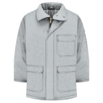 - Two-way, concealed, Nomex® tape, brass, break-away zipper, concealed snap at top of zipper at neck