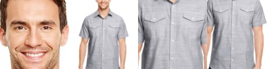 3.3 oz. 55/45 cotton/polyester; 2 chest pockets, button flaps; Front stitching and on yoke; Blue & red have black inner collar; Hem sleeves and bottom;