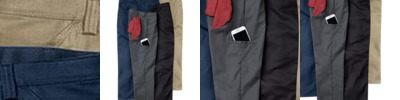 - Two set-in front pockets, two patch hip pockets, rule pocket