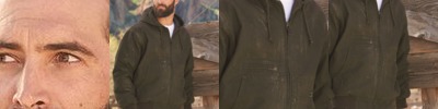 - Three-panel hood with drawcord