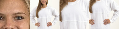 - 4.3 oz./yd², 50/50 combed ring-spun USA premium cotton/polyester fine jersey, 30 singles