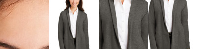 This lightweight, dual-color cardigan layers beautifully and has a timeless appeal. An open front and front and back seaming details at the waist give it sophistication.