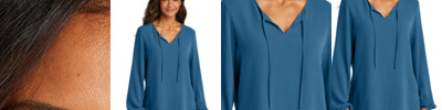 A fresh neckline with tie gives this comfortably flowy blouse a sophisticated look.
