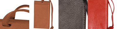 - Holds ID/business card card behind clear PVC window on back panel hidden by Leather flap