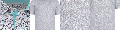 - Three-button placket with collar stay