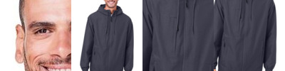 95/5 recycled polyester/cotton Moisture-management properties Three-panel hood with drawcord Set-in sleeves Pouch pocket Tag-free label