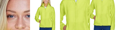 7.9 oz./yd²,100% spun soft polyester fleece Non-pill finish on surface Front yoke Raglan sleeves Princess seams for feminine shape Non-roll elastic cuffs Dyed-to-match zippers and zipper pull Front-zip pockets Bottom hem with drawcord and toggles