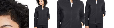 - Reverse coil center front zipper with dyed-to-match rubberized branded zipper pull