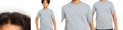 Oatmeal heather, Heather Grey and Charcoal Heather: 60/30/10 cotton/recycled polyester/polyester