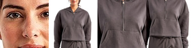 8 oz./yd²., 60/40 cotton/recycled polyester Heather Grey: 90/10 cotton/viscose Feminine fit Zip detail to sides of sweatshirt Tear away label Recycled polyester from post-consumer plastic