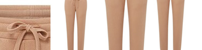 - Tapered leg with flat front hem covered elastic at back hem