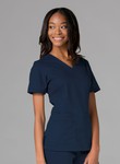 If this top had more storage, we'd have to call it a garage! This five pocket top is an easy-to-wear V-neck pullover with one breast pocket, two lower layered pockets on the left and a single pocket with an interior cell phone division on the right. Locker loops make this top easy to hang up after a long shift. 65% Polyester/ 35% Combed Cotton Medium regular length 30"