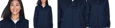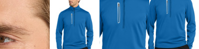 With contrast color detailing throughout, this double-knit jacket is right on trend with moisture-wicking performance and a left sleeve pocket for your phone or MP3 player.