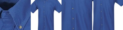 100% polyester • 3.8-oz. • self-fabric collar • three-button placket with dyed-to-match buttons • double-needle cuffs and bottom hem • Sizes: S-3XL